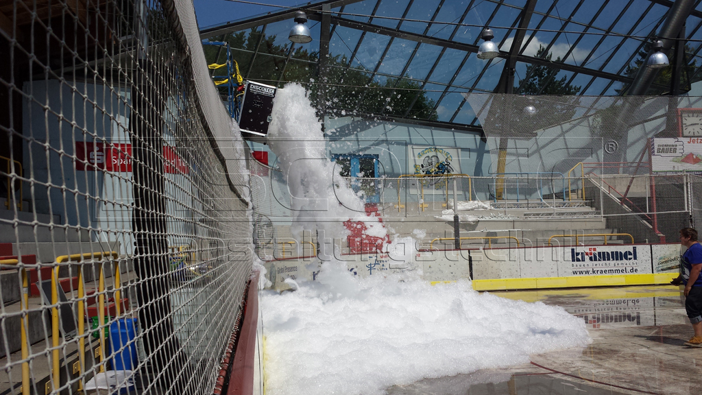 Unsere Schaumgeneratoren entsprechen selbstverständlich den CE-Richtlinien und sind deutsche Qualitätsprodukte. Sie funktionieren ganz einfach: Eine Pumpe transportiert Wasser und Schaumkonzentrat aus dem Tank zu einer Düse, die das Gemisch fein auf ein Schaumnetz sprüht. Durch den Luftdruck eines Ventilators entsteht schließlich der Schaum, der sich für das Partypublikum so angenehm weich anfühlt.